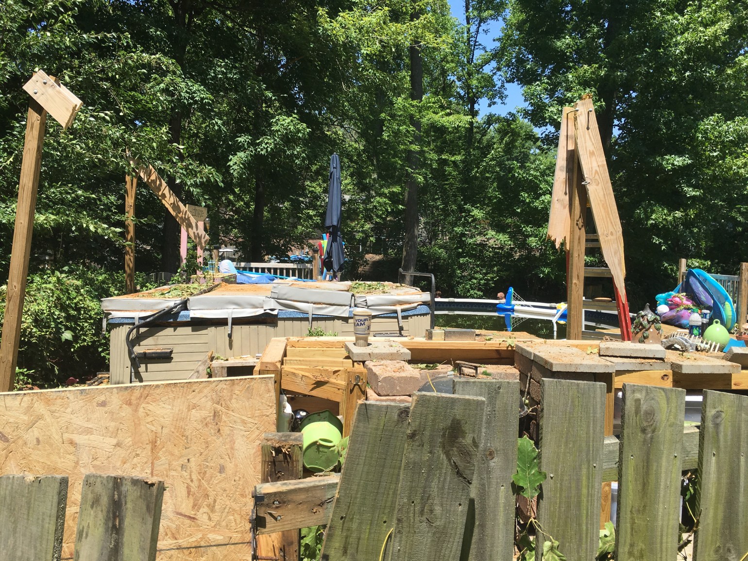 How are the girls? Everyone has asked this. Devastated. They watched from the windows as we and a team of friends uncovered their beloved back yard. What can we do? I have been on the phone trying my best to move it along and get things fixed. The girls and I went and put a deposit on a new pool today, will ours be covered enough to buy it? I don’t know and I simply don’t have the capacity to care right now. This is something that is truly a joy for them and there is no price tag for that.We waited and bought our current one in the middle of winter for a deep discount. There is no way to recover that. Can we afford to replace the huge 12 person hot tub we got used and completely refurbished for a steal? No. We hope and pray they give us something for it, but there is nothing comparable to what we had for under 10K – seriously this has been the worst 2 days. We have curated the items for our family at discounts and off season. We have accepted used and refurbished items, cause we knew the value. This is no number we can give the insurance guy, the value far exceeds how we acquisition each item. One moment…one breath and it all changed.